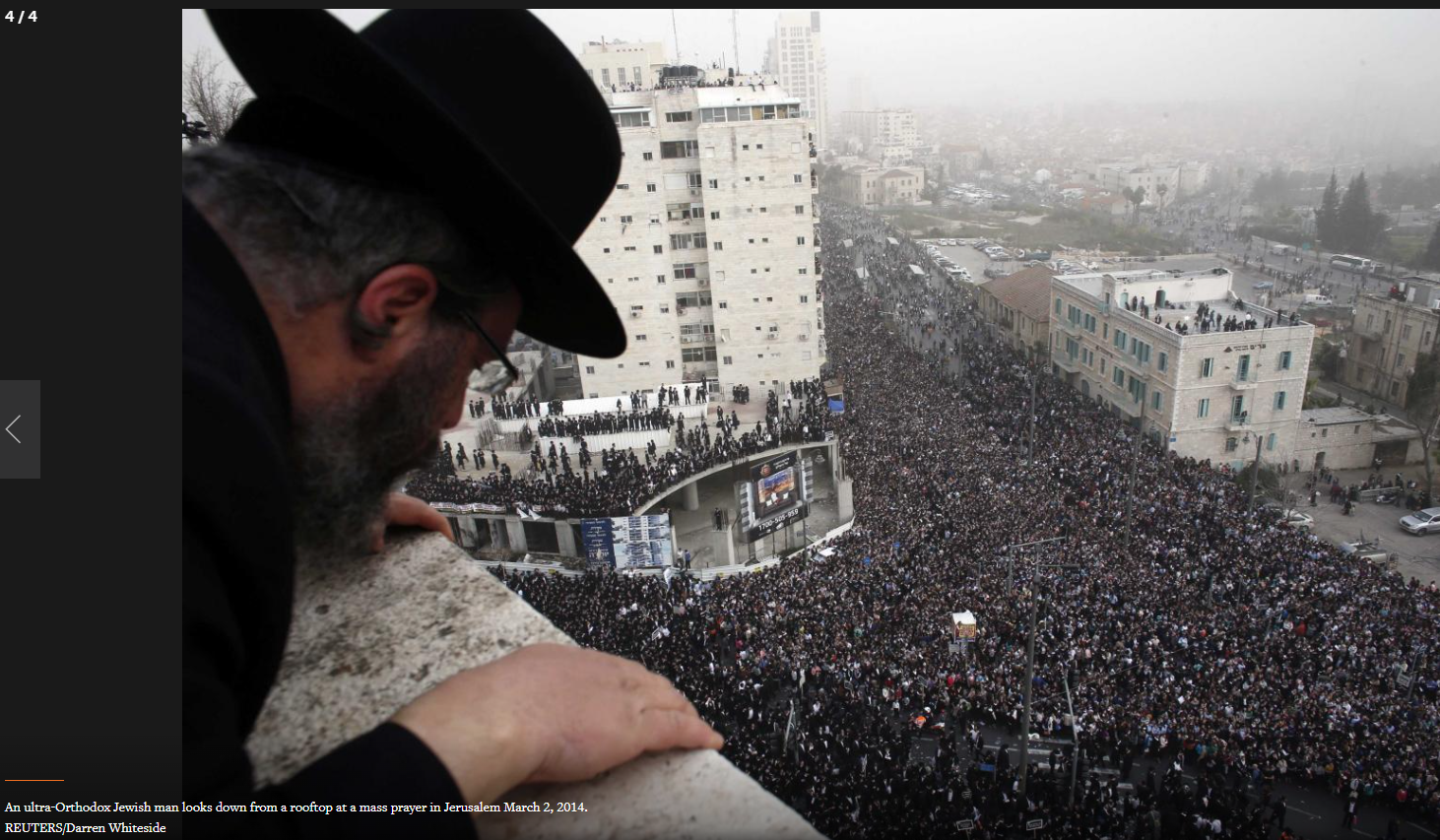 Ultra-Orthodox Jews take part in a mass prayer in Jerusalem March 2, 2014. REUTERS/Darren Whiteside
