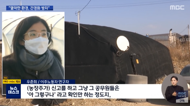 경기 이천시의 한 농장 비닐하우스에서 5년간 숙박과 재배 노동을 한 이주노동자 C씨는 “가장 고통스러운 건 추위였다.