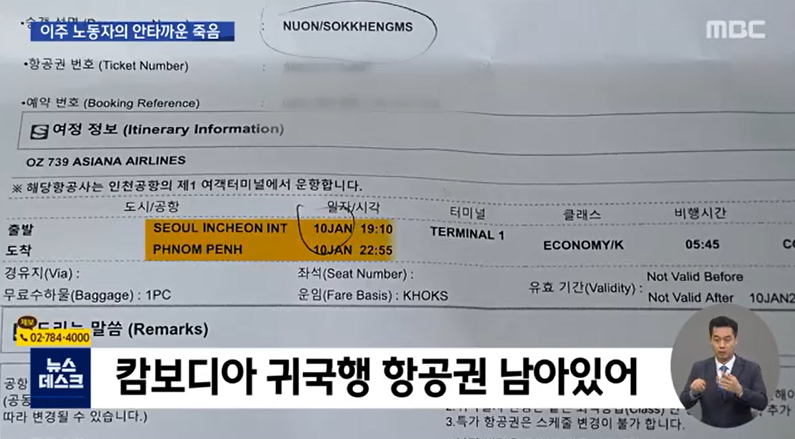 속헹씨는 내년 2월이면 취업비자가 만료되는데, 그녀가 쓰던 방에선 1월 10일자 캄보디아 프놈펜행 항공권 예약증이 남아있었습니다.