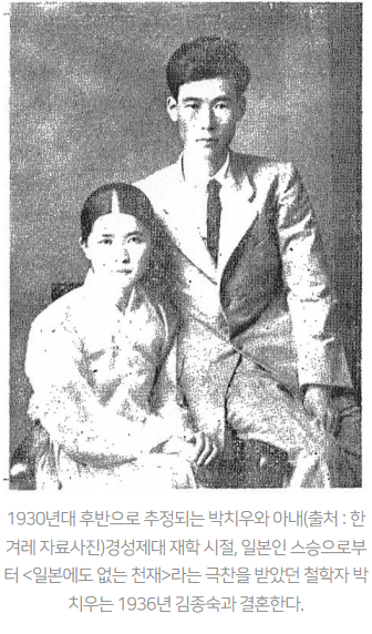 경성제대 재학 시절, 일본인 스승으로부터 <일본에도 없는 천재>라는 극찬을 받았던 철학자 박치우는 1936년 김종숙과 결혼한다.
