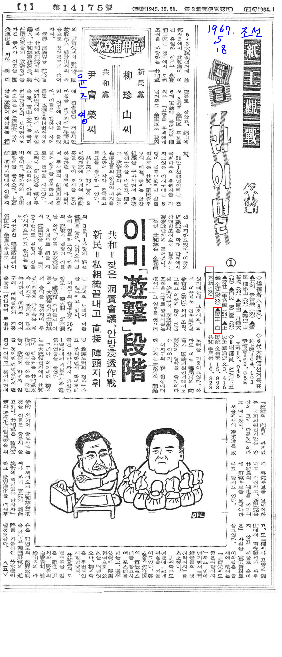 1967년 6-8 총선, 5월 18일자 조선일보 보도.