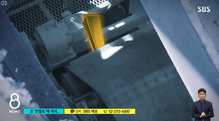 사고 직전 컨베이어벨트 끝부분에 철근이 박혔는데, 원 씨가 벨트 밑에 손을 넣어 철근을 빼는 순간 벨트가 다시 움직였고 그대로 빨려 들어간 것입니다.