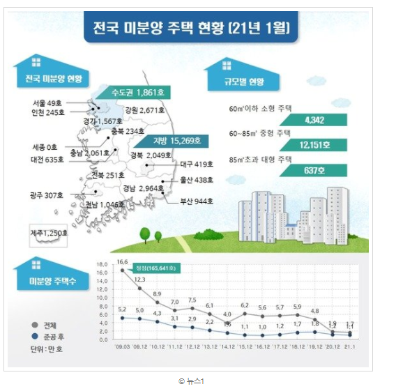 국토교통부는 28일 '2021년 1월 말 전국 미분양 주택'이 총 1만7130가구로 집계됐다고 밝혔다.