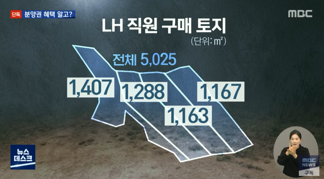 LH 직원들이 1개 덩어리 땅을 4개로 나눠서, 토지가 매각되면, 자동적으로 아파트 4개 분양권을 받을 수 있게 되었다.