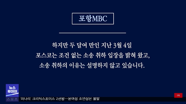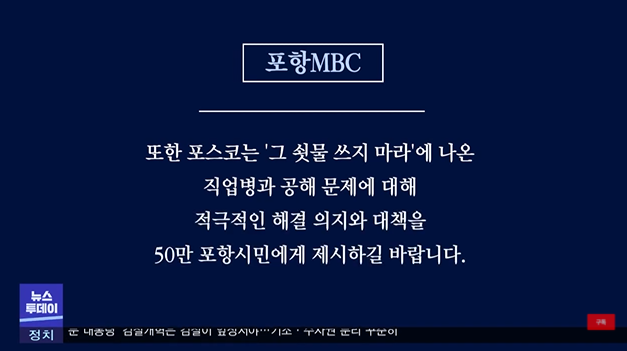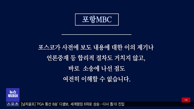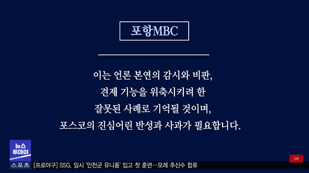 3월 9일 포스코가 포항 MBC에 사과를 했으나, 그 사과 내용은 구체적으로 없다.