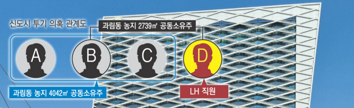 서울 용산의 한 공인중개사는 “부동산 규제 발표 직후 10억원 넘는 돈을 빌려 농지를 사는 건 일반인이 상상하기 어렵다”면서 “신도시 지정 개발될 것이라는 확실한 정보가 있었을 것”이라고 말했다. A씨가 B씨를 매개로 직원 D씨와 연결되는 점을 감안할 때, D씨로부터 ‘모종의’ 개발정보를 입수했을 가능성이 충분하다는 얘기다.