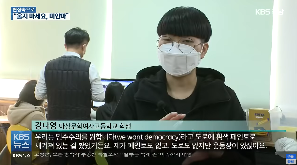 민주주의를 위해 거리로 나와 시위하는 시민들과 비슷한 나잇대의 친구들을 보니 안타까운 마음이 듭니다.