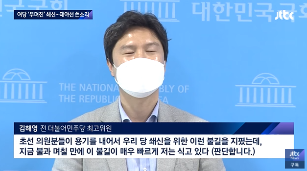 김기식 - 중도층 이탈했다. 대선도 진다. 오만, 독선, 무능 지적.