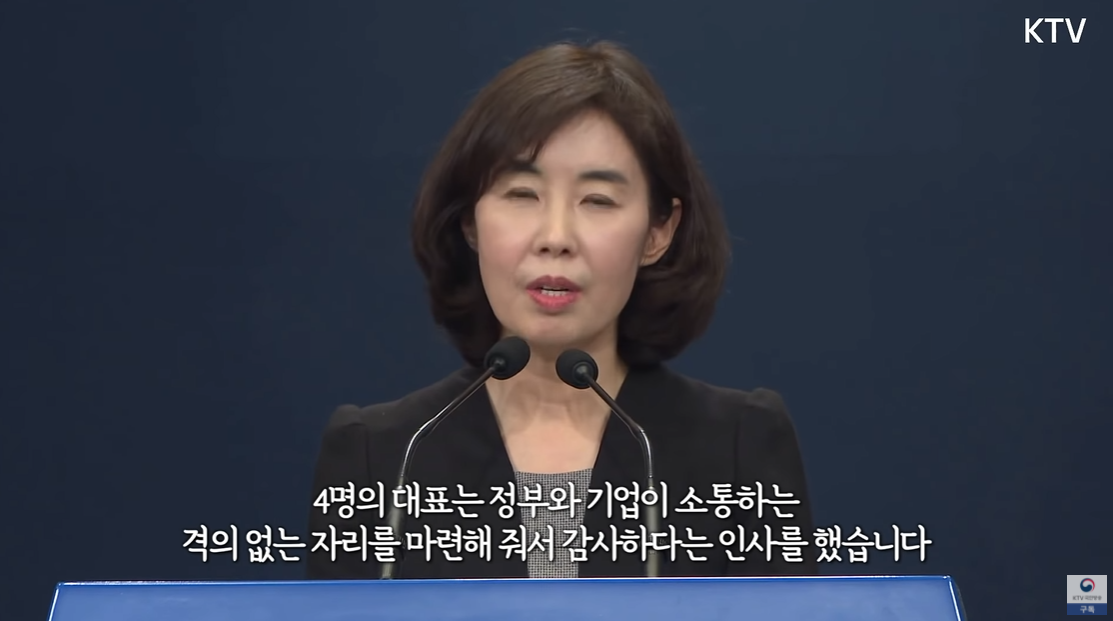 "4명의 대표는 정부와 기업이 소통하는 격의없는 자리를 마련해줘서 (문재인 대통령에게) 감사하다는 인사를 했다."