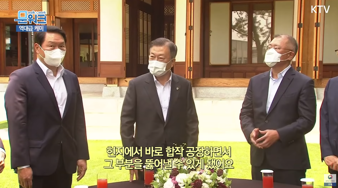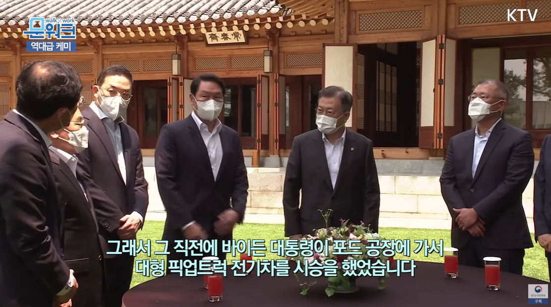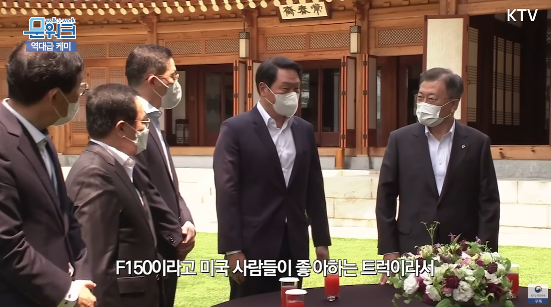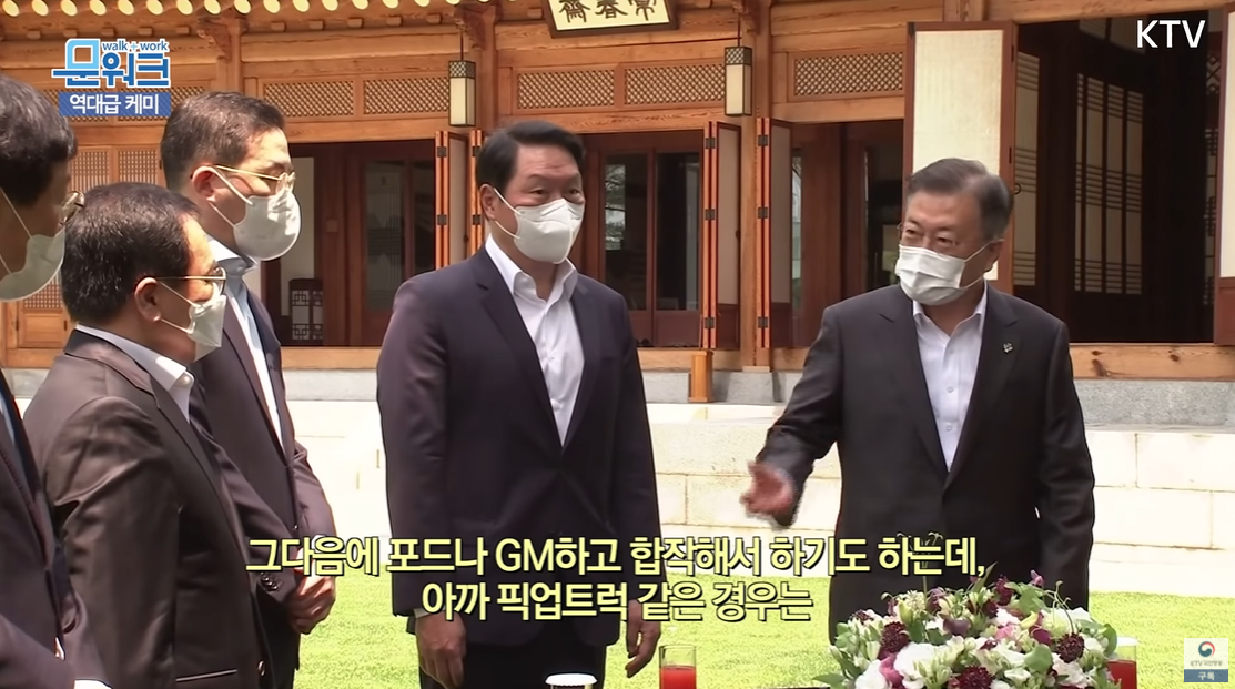엄청난 디테일이었다. 문재인 대통령은 SK 가 미국 포드사 F150 픽업 트럭에 전기차용 배터리를 공급한다는 것을 언급했다. SK 회장의 역할과 대통령의 역할의 경계가 무너졌다. 이렇게 홍보 대사 역할을 하는 것이 궁극적인 대통령의 임무인가?