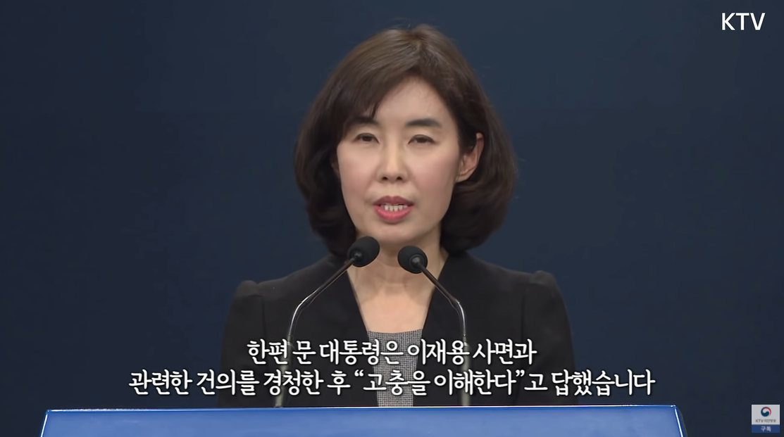 한편 문재인 대통령은 이재용 사면과 관련한 건의를 경청한 후, "고충을 이해한다"고 답했다.