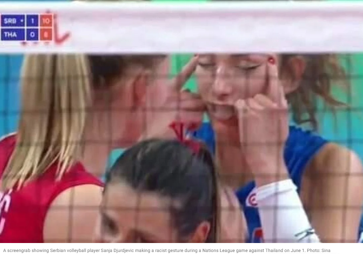 Serbian volleyball player suspended after making anti-Asian racist gesture during match against Thailand