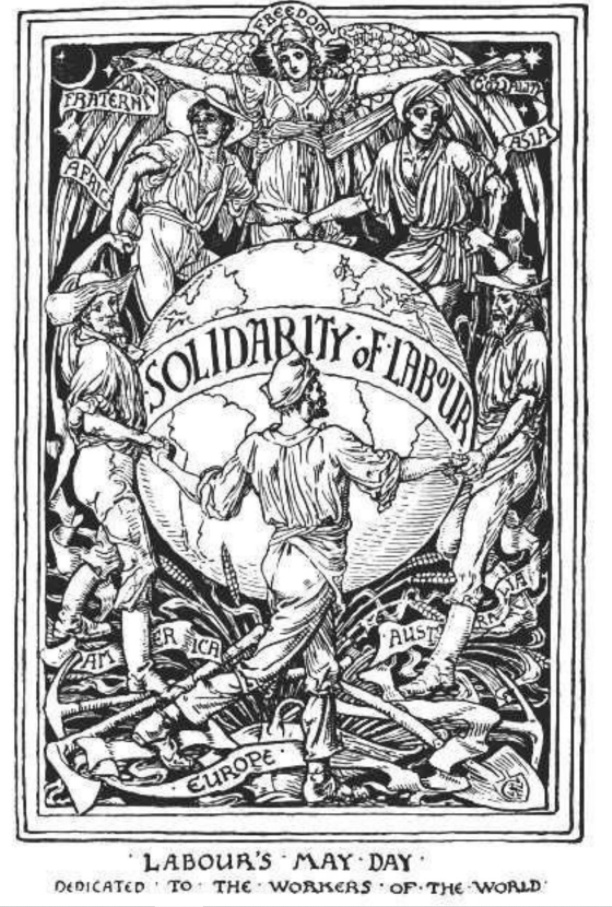 1926년 메이 데이. 월터 크레인의 그림이 사용되었다. 제목을 직역하면, "협력하는 다같이 잘 사는 나라"이다. 노동자를 위한 세상.