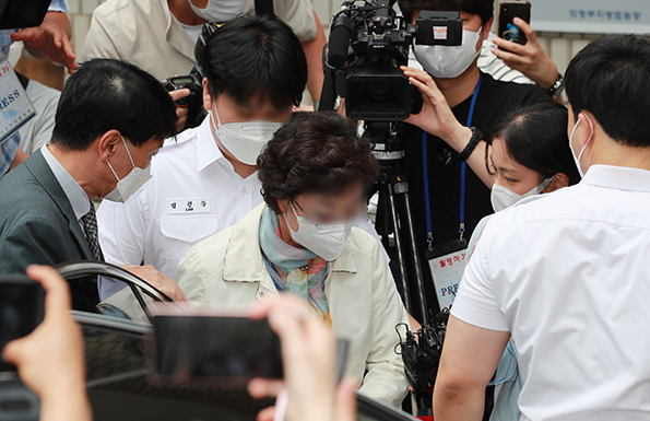 재판을 받기 위해 법원에 출석하는 윤석열 전 검찰총장의 장모 최모 씨. /연합뉴스윤석열 전 검찰총장이 지난 달 29일 대권에 ‘출사표’를 던진 가운데 의료법 위반과 특정경제범죄 가중처벌