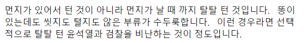 "먼지가 있어서 턴 게 아니라, 먼지 날 때까지 턴 것입니다."