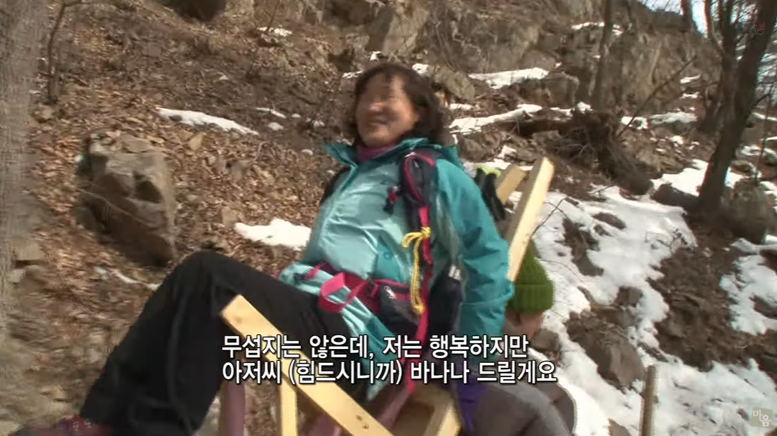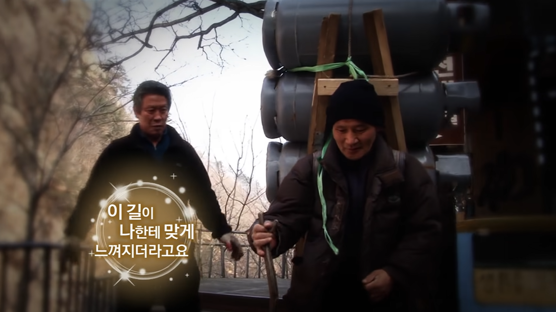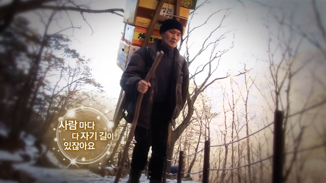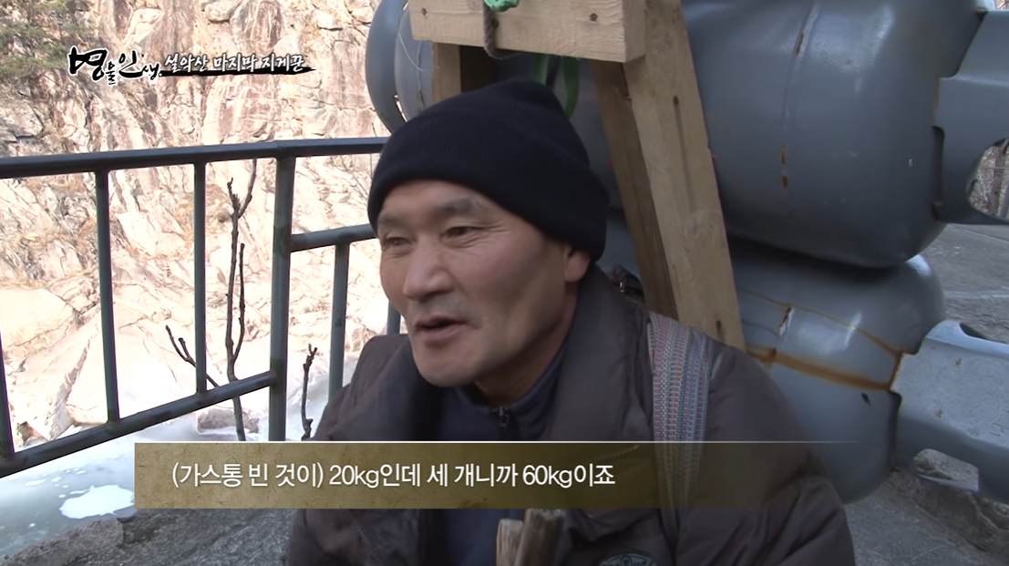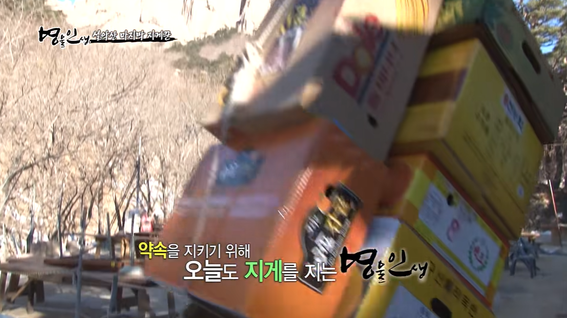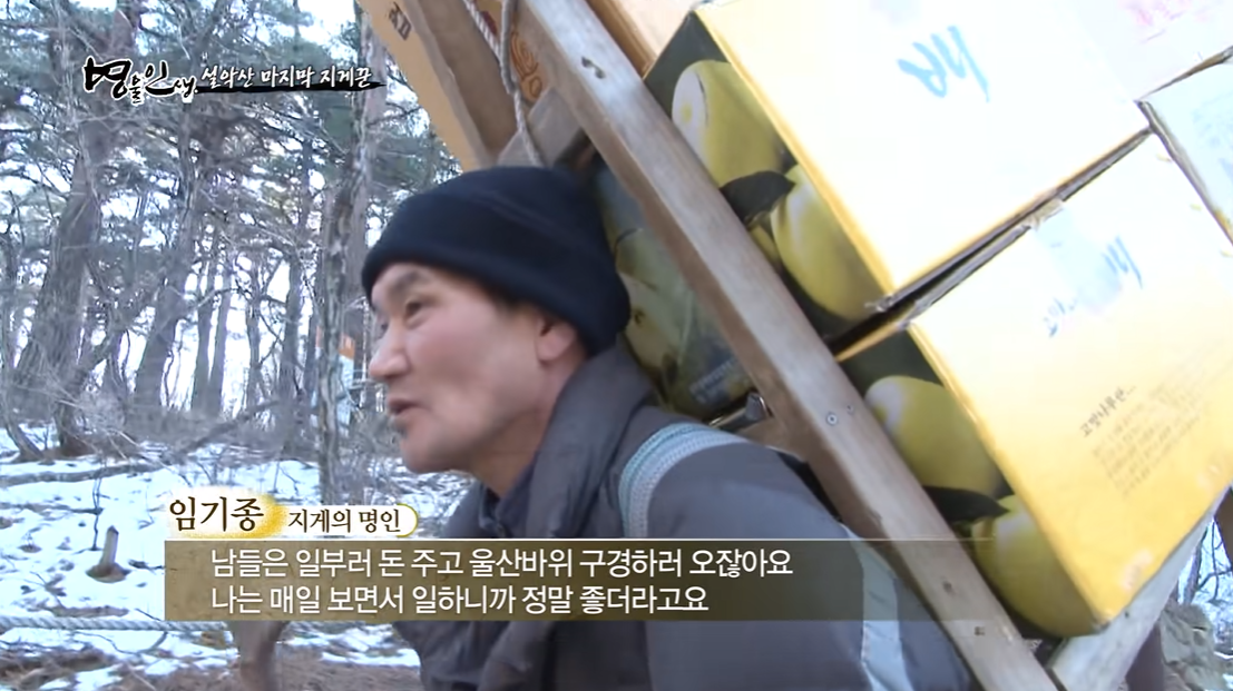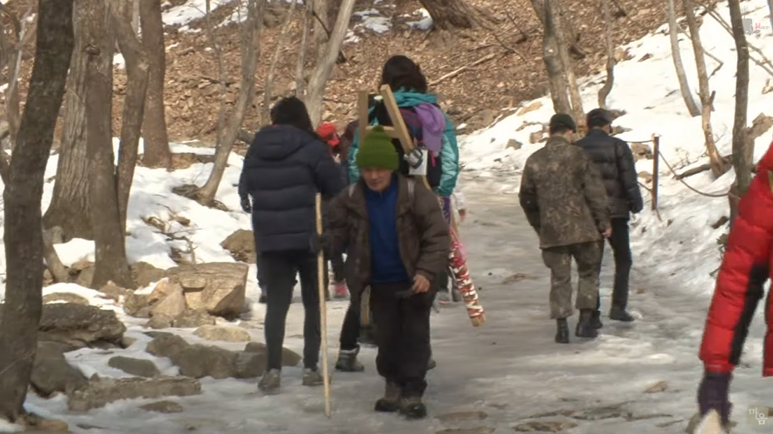 상인들과 약속을 지키기 위해, 무거운 짐을 지게에 지고 설악산을 오르다.