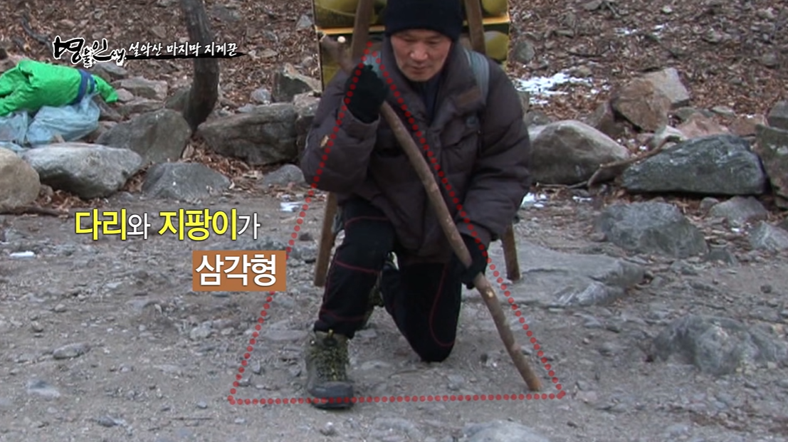 육체적으로도 힘든 일이지만, 기술과 노하우가 존경스럽다. 다리와 지팡이를 삼각형 모양으로 만든다. 허리에 부담이 가지 않게 한다. 일어설 때도 '삼각형' 모양을 유지한다. 두 다리, 지팡이로. 울산 바위. 기억이 나지 않는다.