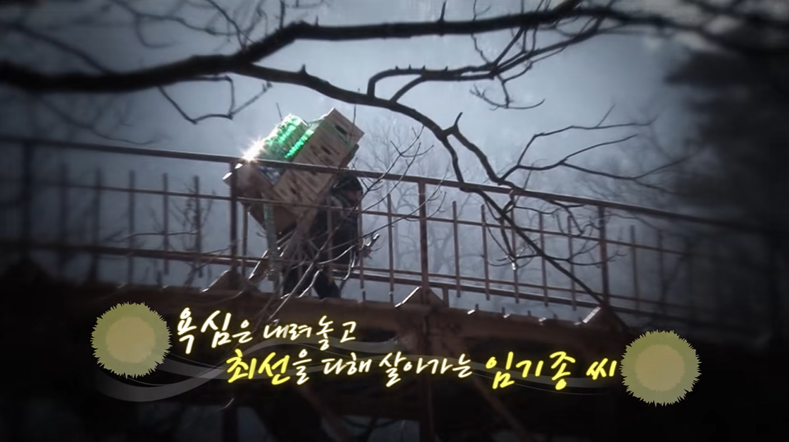 동영상처럼 임기종씨의 삶이 단순했겠냐마는, 그가 살아온 길에는 깊은 자국이 베어 있음은 분명하다. 오르고 내리면서 그가 무슨 생각에 잠겼을까? 사고가 나지 않기 위해서 한 걸음 한 걸음에 집중했을 시간, 그 시간에 존경을 표명하고 싶다.