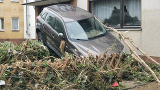 Das Wasser hatte so viel Wucht, dass Autos in Gärten geschwemmt wurden.SWRBild in Detailansicht öffnenBild in Detailansicht öffnen
