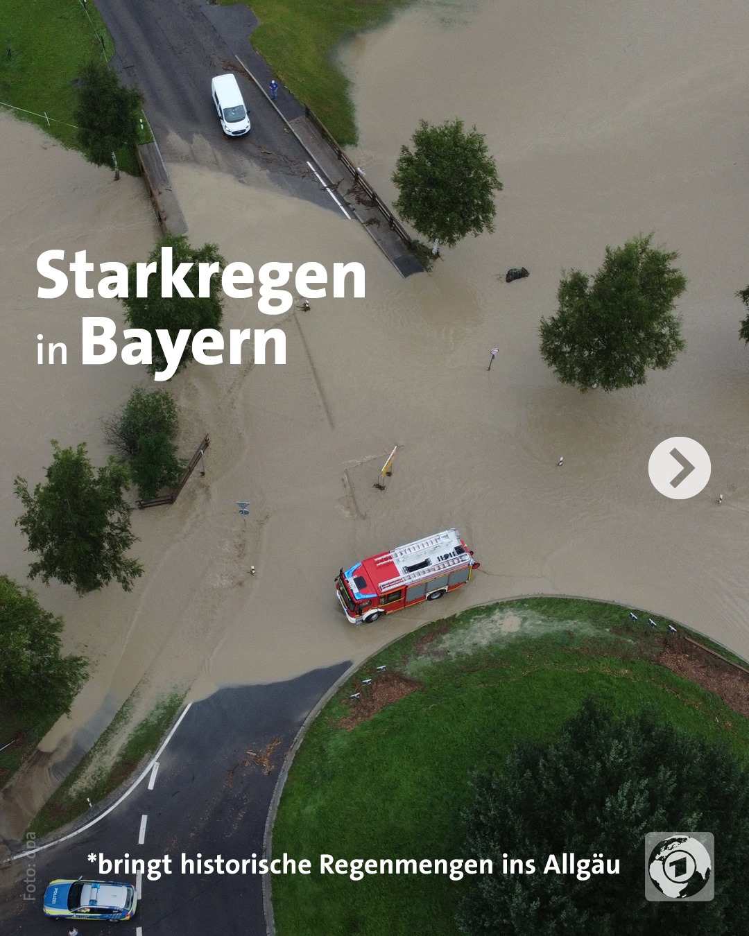 Starkregen in Bayern! Das sind Spuren des Klimawandels, von Menschenhand! Mensch und Politik sollten den Klimawandel nicht mehr unterschätzen, auch die Kritikerinnen und Kritiker nicht, die alles in Frage stellen! Umwelt-und Klimaschutz sollten jetzt Priorität haben, auch für Bayern.