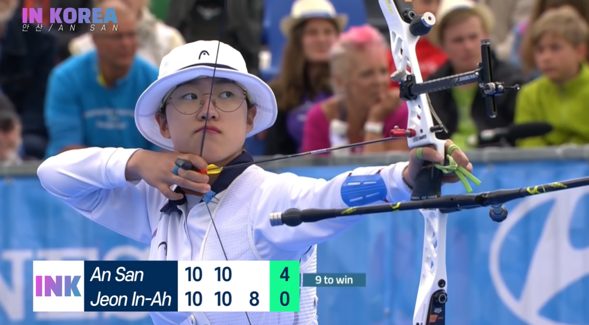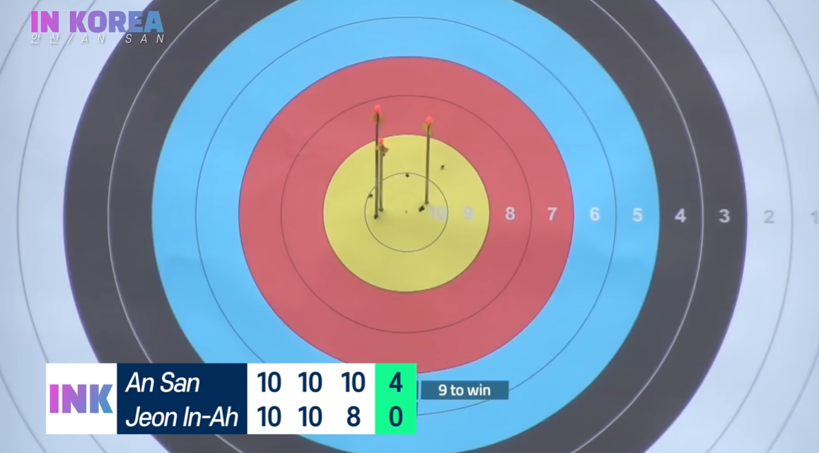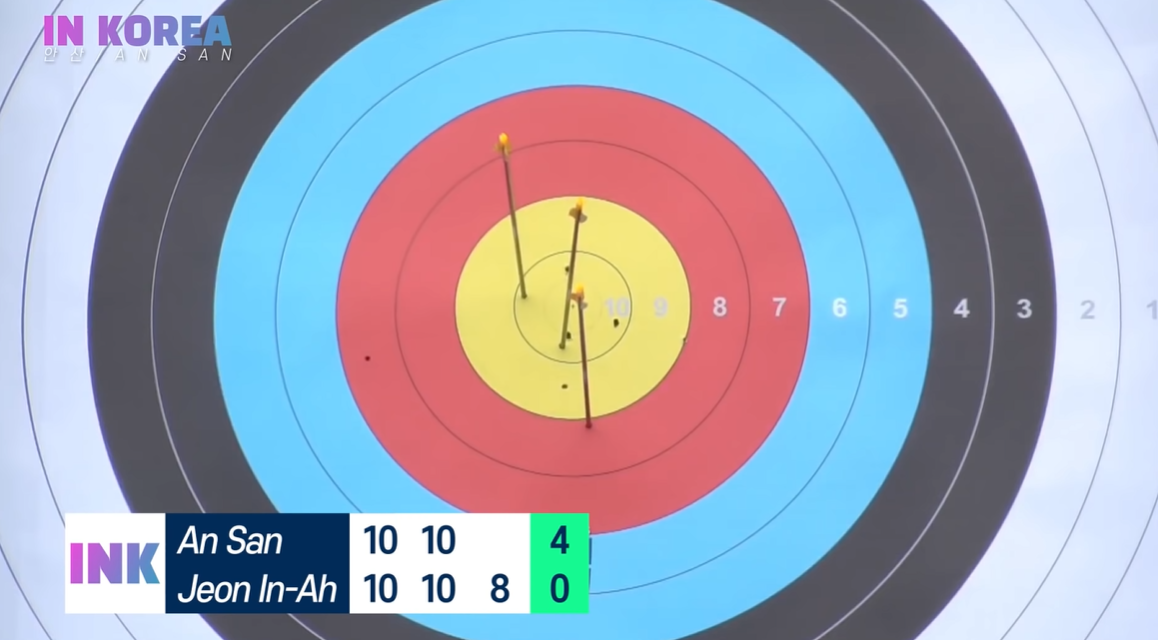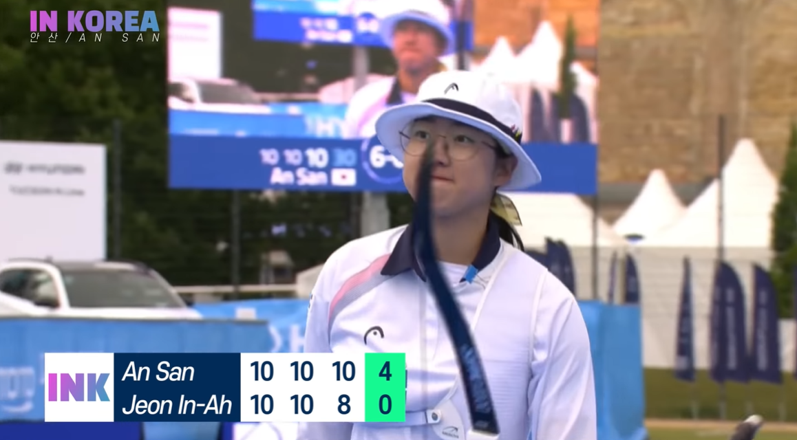 전인아 궁사가 10.10.8인데, 안산은 10,10,10으로 기록해 1위를 차지했다.