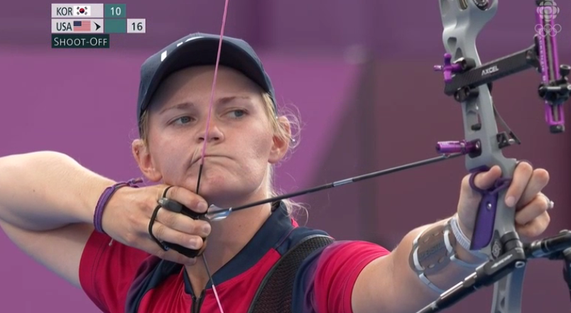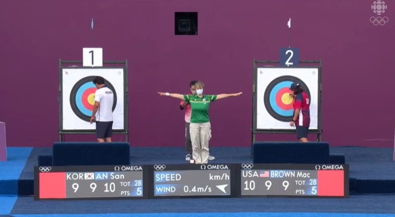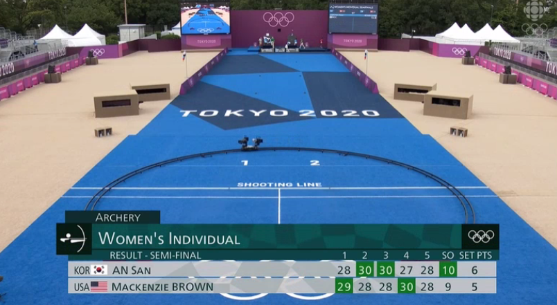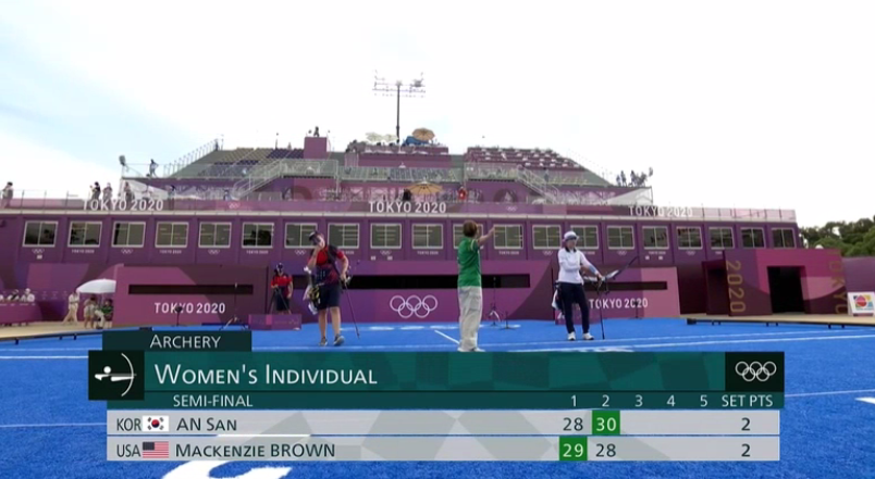슛오프에서 안산이 10점, 맥켄지가 9점을 쏴서 안산이 아슬아슬 이겼다.