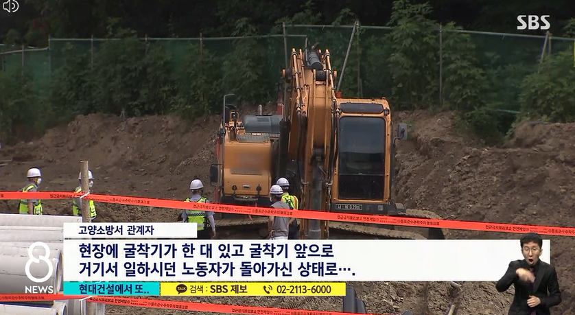 [고양소방서 관계자 : 현장에 굴착기가 한 대 있고 굴착기 앞으로 거기서 일하시던 노동자가 돌아가신 상태로….]