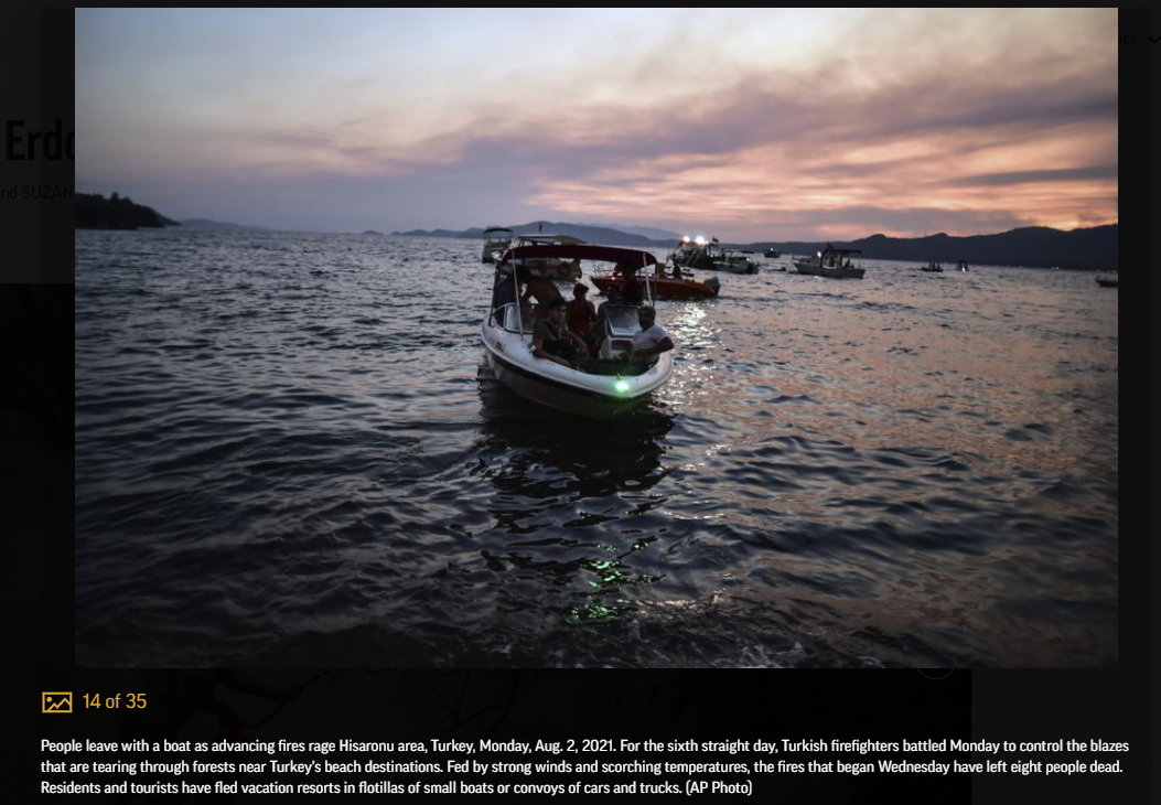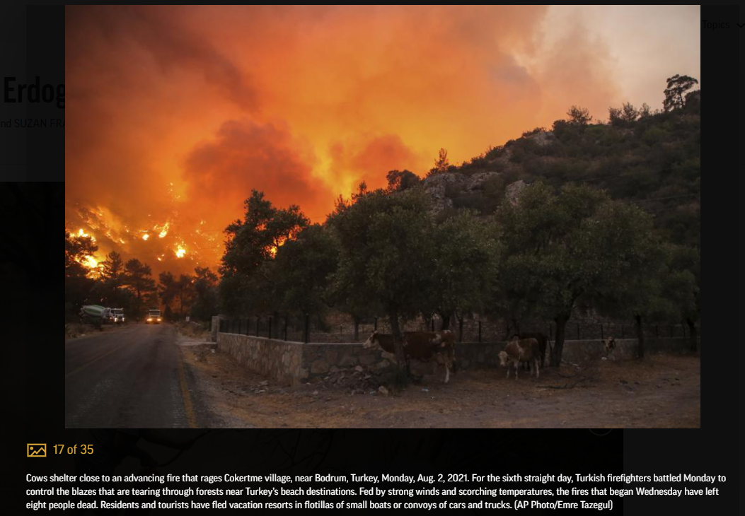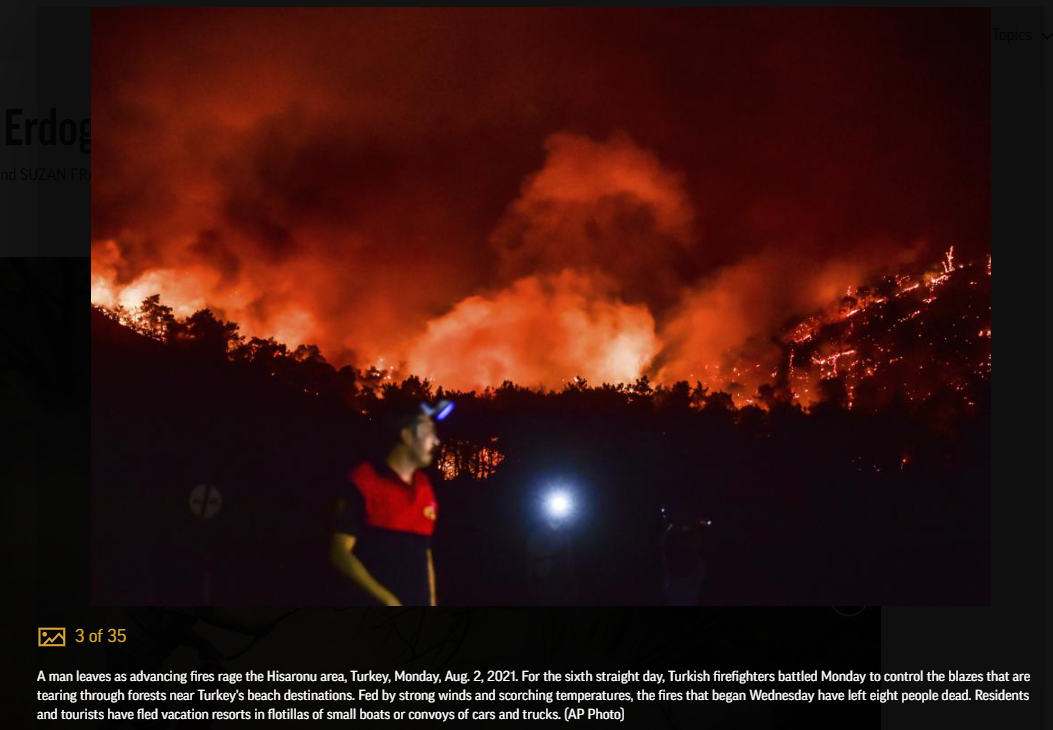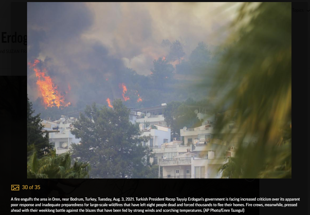 터키 산불로 인해, 터키 대통령 에도간에 대한 비판이 고조되다.