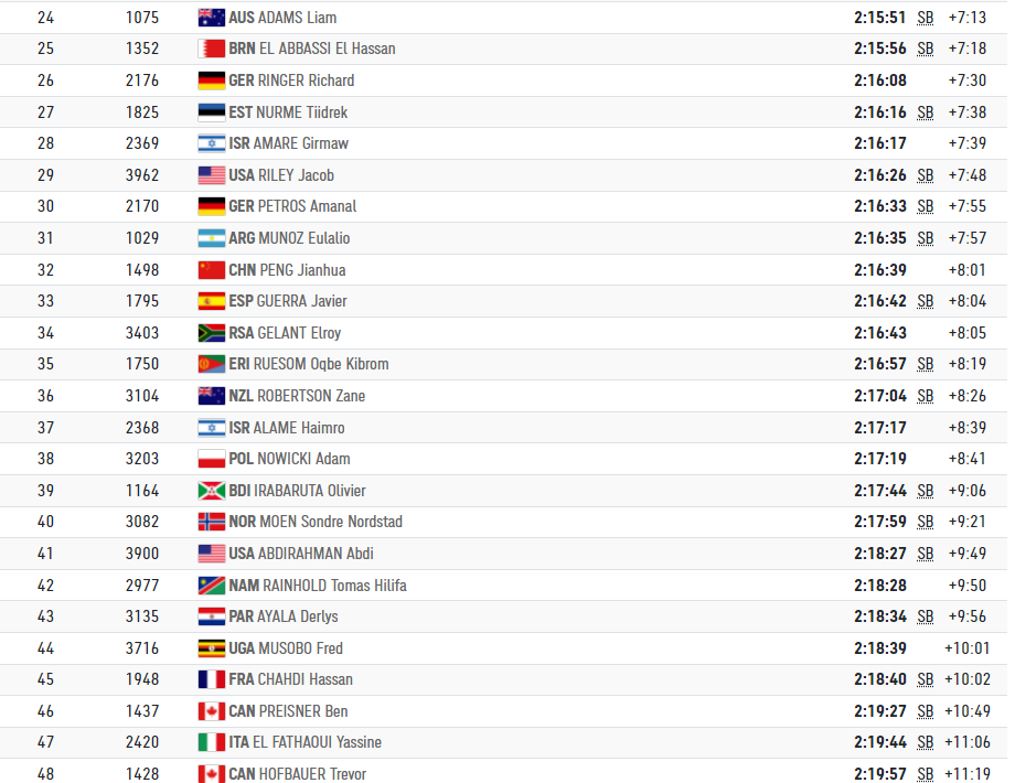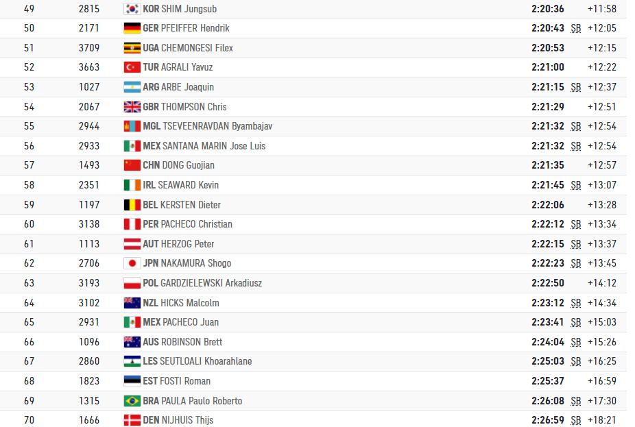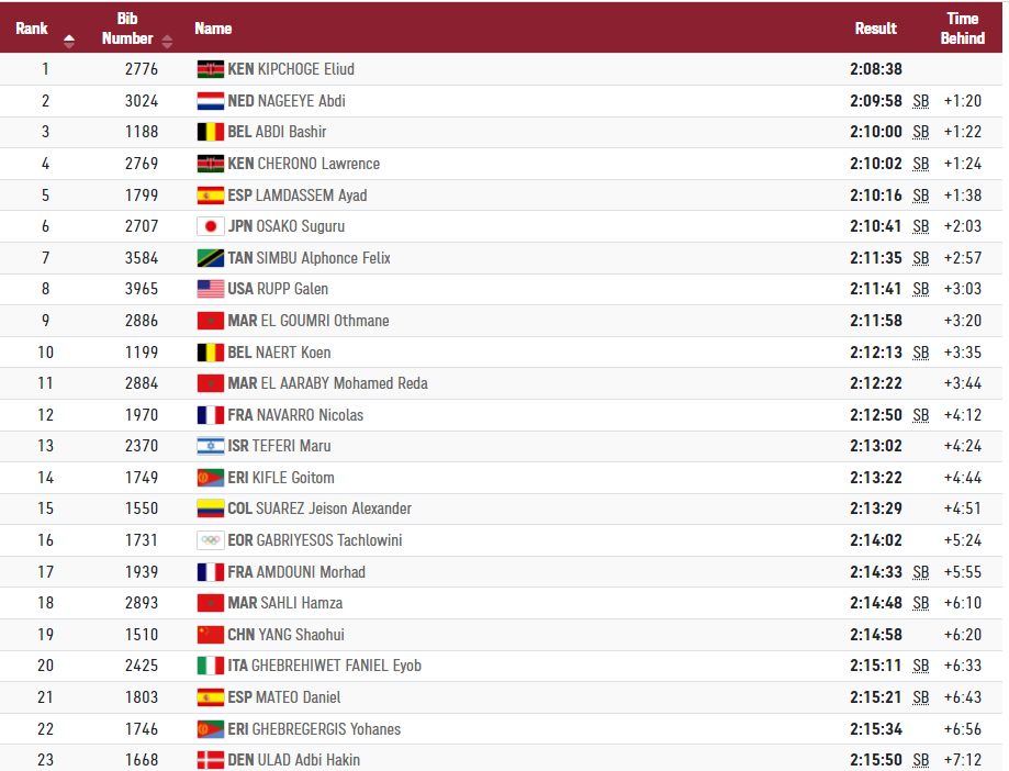 케냐의 체로노가 2위, 네덜란드 나게에가 3위, 벨기에 압디가 4위로 (2시간 8분 38초 대) 달리고 있었다.