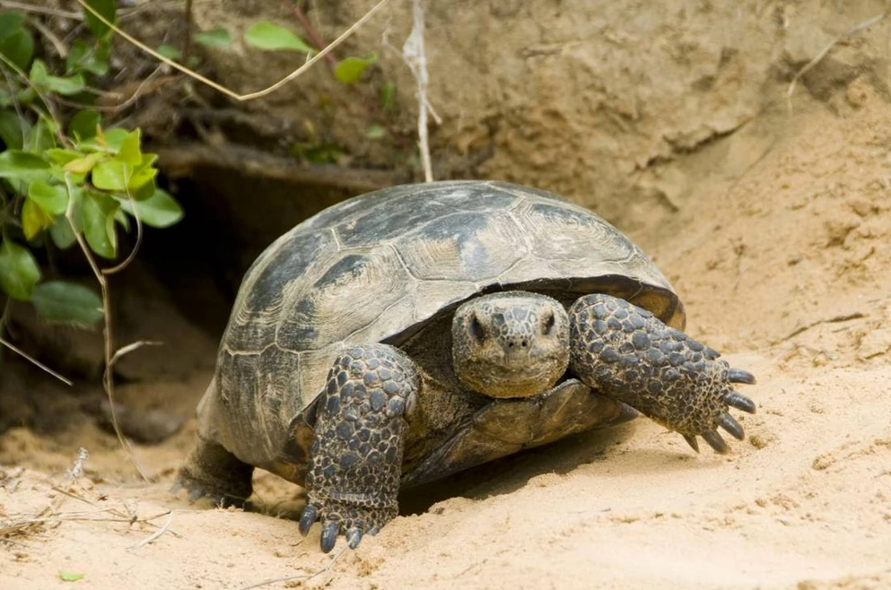 This tortoise digs burrows up to 40 feet wide and 10 feet deep providing year-round shelter from predators and inclement weather for more than three dozen other animal species.