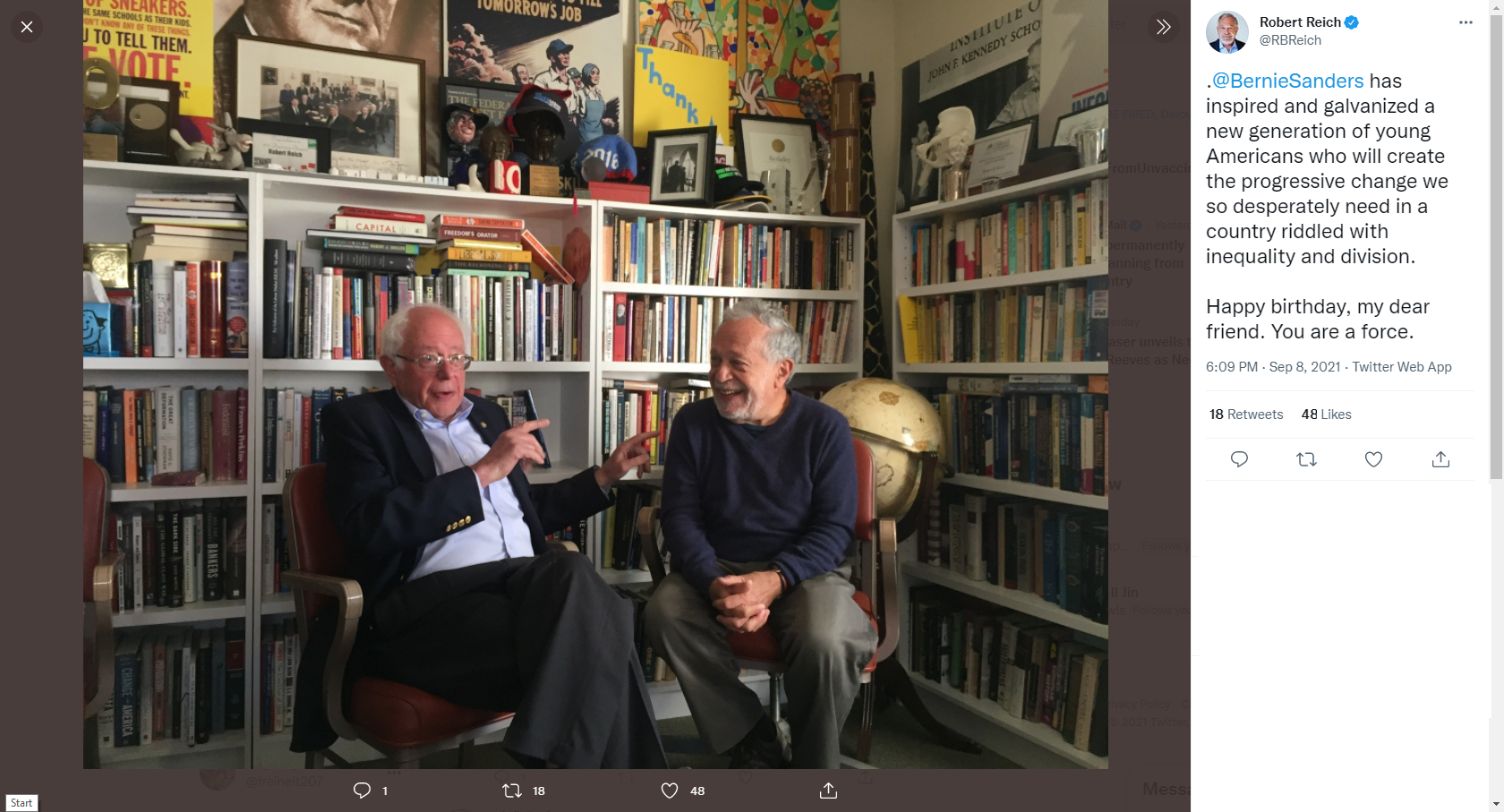 로버트 라이히가 버니 샌더스 생일을 축하해준다.