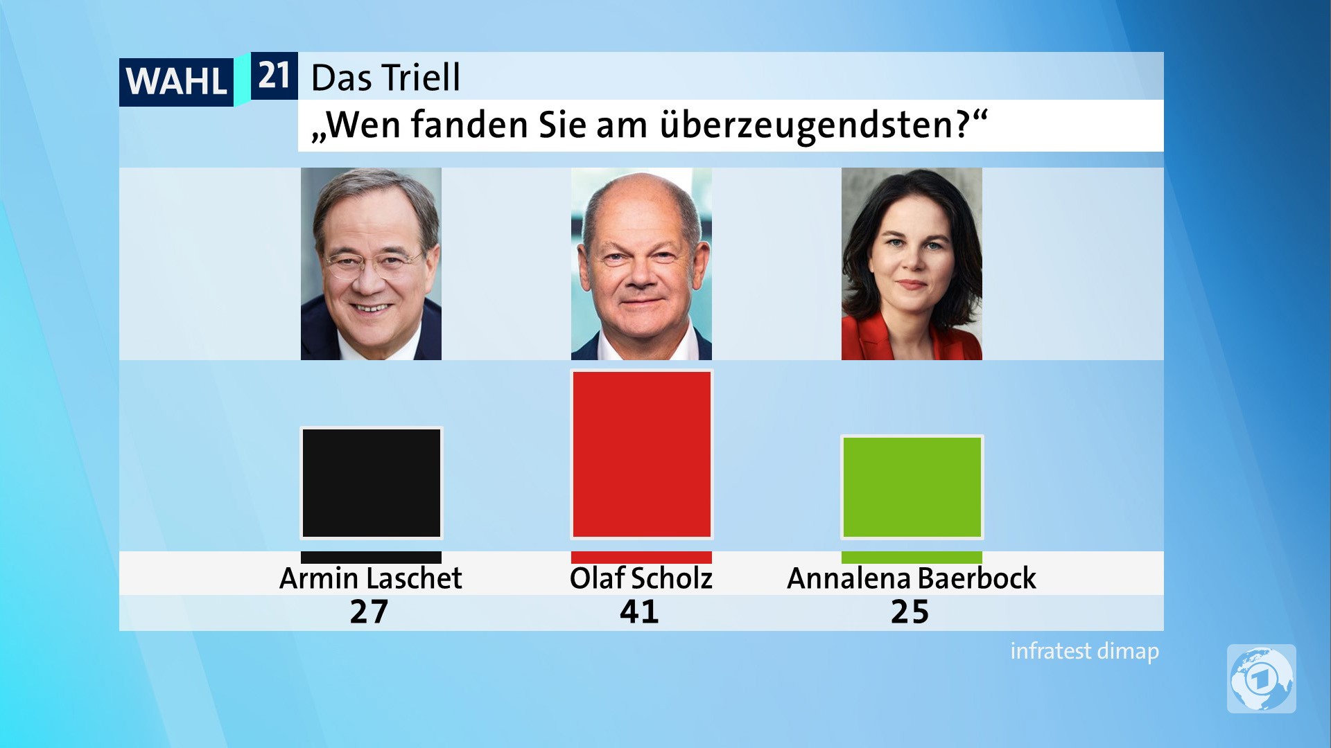Befragt wurden 1750 wahlberechtigte Zuschauer:innen des Triells per zufallsbasierter Telefon- und Online-Befragung.