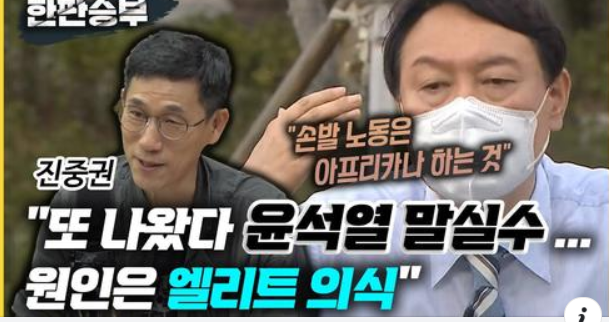 윤석열 국민의힘 후보의 '말실수'는 그냥 막연히 '엘리트 의식' 표출이라기 보다는, 지배자와 기득권의 '정신 세계'를 투명하게 드러내는 것이고, 국민의힘의 노선이기도 함.
