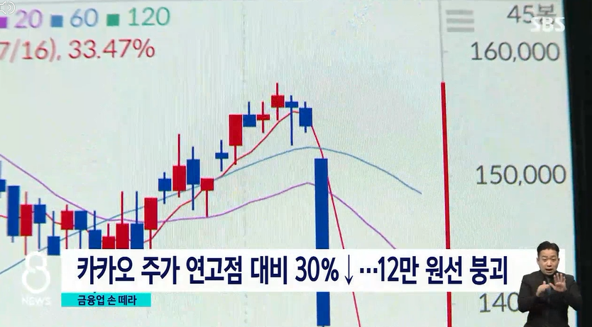 카카오 주가는 연고점 대비 30% 가까이 떨어져 4개월 만에 12만 원을 밑돌았습니다.