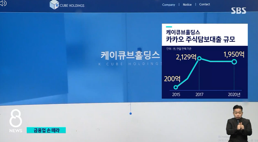 케이큐브홀딩스가 카카오 주식을 담보로 받은 대출액만 1천950억 원, 이 자금으로 계열사 지분 확보나 파생상품과 해외주식에 투자하는 등 금융투자사업을 키웠습니다.