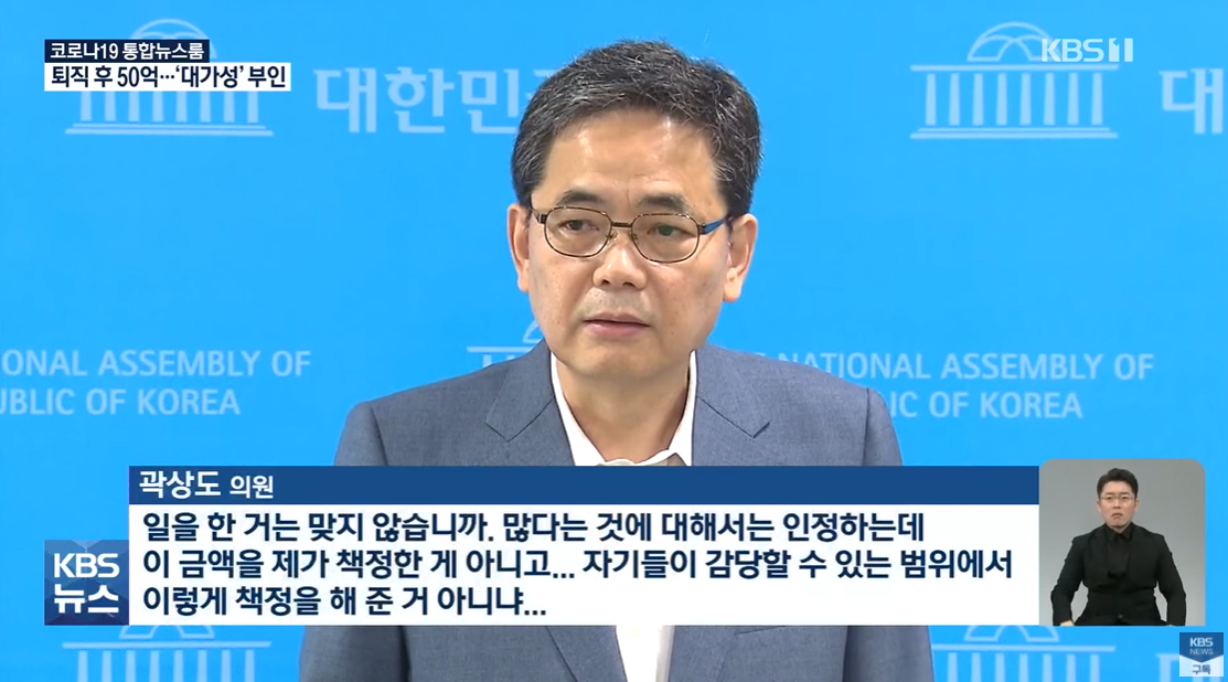 [곽상도/의원 : "일을 한 거는 맞지 않습니까. 많다는 것에 대해서는 인정하는데 이 금액을 제가 책정한 게 아니고... 자기들이 감당할 수 있는 범위에서 이렇게 책정을 해 준 거 아니냐."]