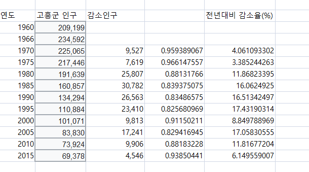 전남 고흥군 인구 감소 추이 내용 특이점.