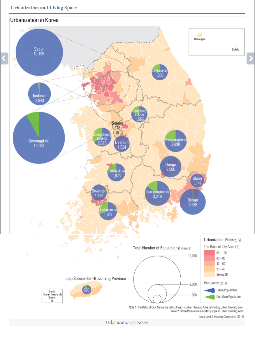 ㅇ 2012년도 도시지역 인구비율은 91.0%로서, 도시에 거주하는 인구비율이 1960년 이후 사상 처음으로 감소함