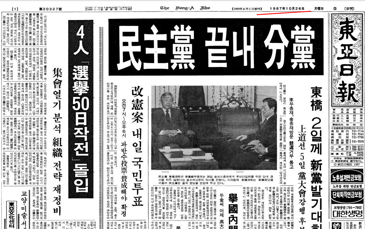 3. 1987년 6월 전두환 퇴진 이후에도, 김영삼-김대중, 김종필 등은 '정당 정치'보다는 인물위주 정치에 몰입했다.