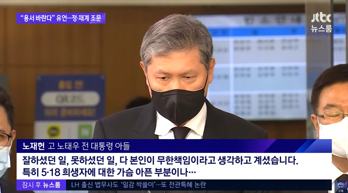 [노재헌/고 노태우 전 대통령 아들 : 잘하셨던 일, 못하셨던 일, 다 본인이 무한책임이라고 생각하고 계셨습니다. 특히 5·18 희생자에 대한 가슴 아픈 부분이나…]