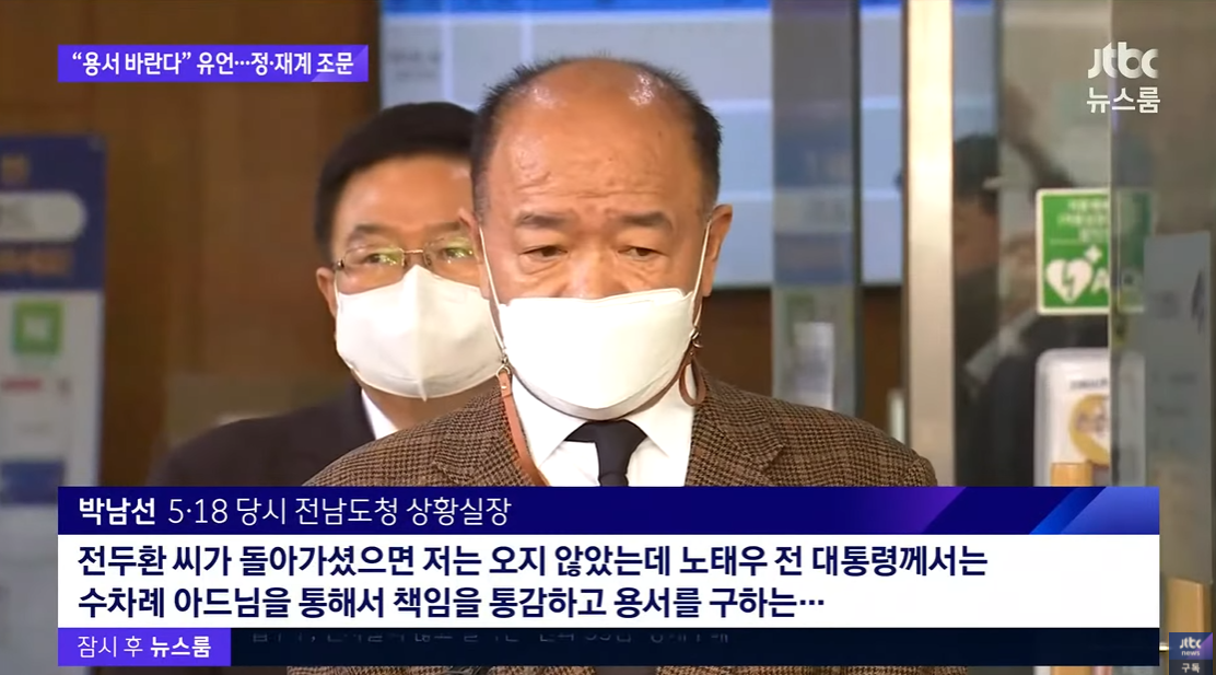 [박남선/5·18 당시 전남도청 상황실장 : 전두환 씨가 돌아가셨으면 저는 오지 않았는데 노태우 전 대통령께서는 수차례 아드님을 통해서 책임을 통감하고 용서를 구하는…]