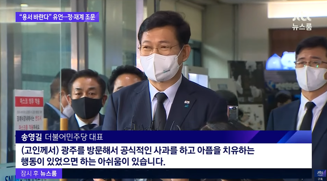 [송영길/더불어민주당 대표 : (고인께서) 광주를 방문해서 공식적인 사과를 하고 아픔을 치유하는 행동이 있었으면 하는 아쉬움이 있습니다.]