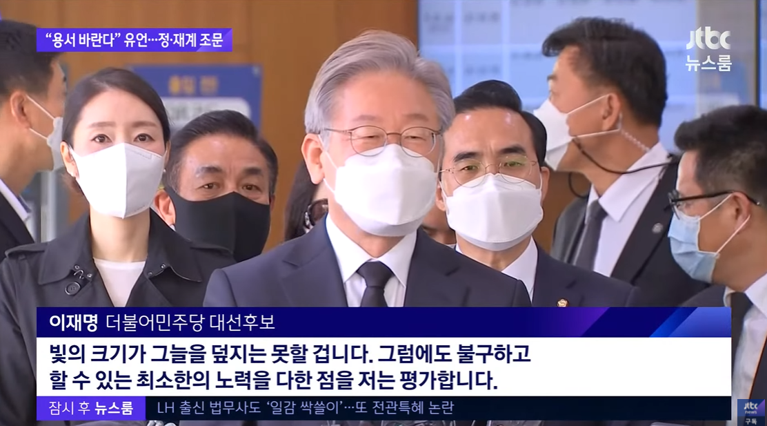 [이재명/더불어민주당 대선후보 : 빛의 크기가 그늘을 덮지는 못할 겁니다. 그럼에도 불구하고 할 수 있는 최소한의 노력을 다한 점을 저는 평가합니다.]