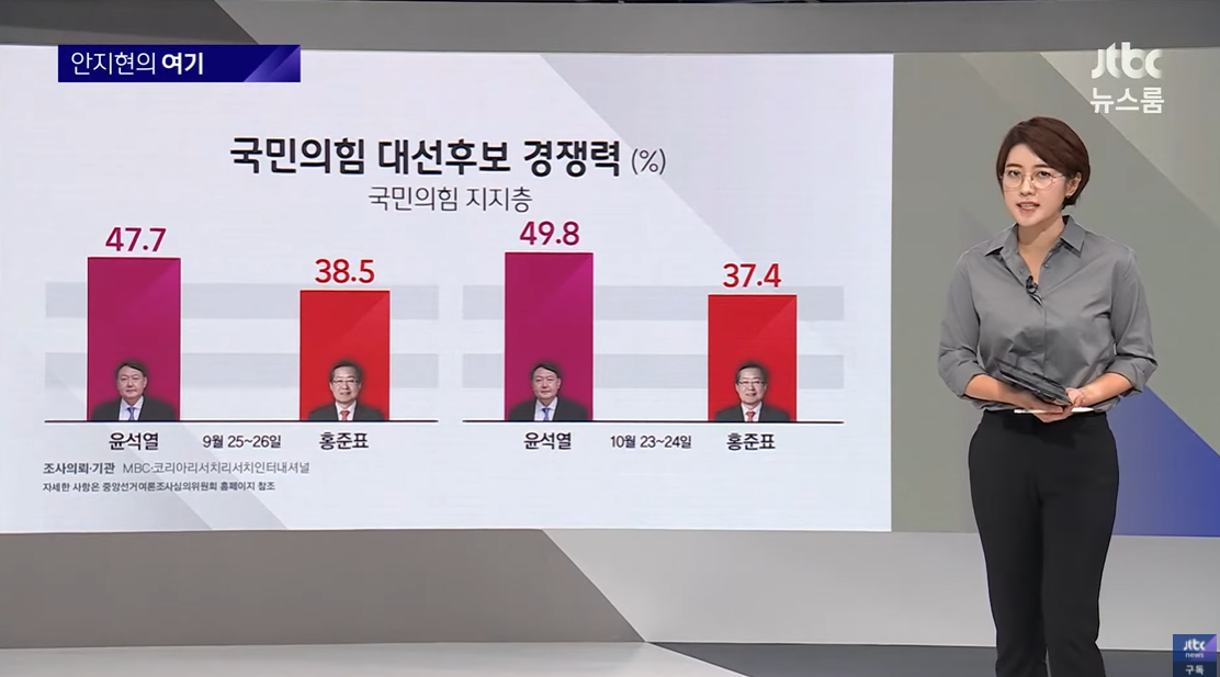 다만, 4명 후보 중에 경쟁력 있는 한 명을 뽑는 기존 여론조사 문항에서 홍 후보가 우세하게 나오는 만큼 홍 후보 입장에서 기회는 더 열렸다는 해석 가능합니다.