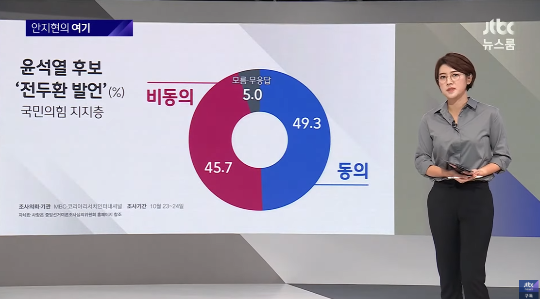 그래서 이번주 여기 '전두환과 개사과'의 결론은요, '윤석열에 대한 민심은 주춤, 당심은 아직 견고'로 하겠습니다.