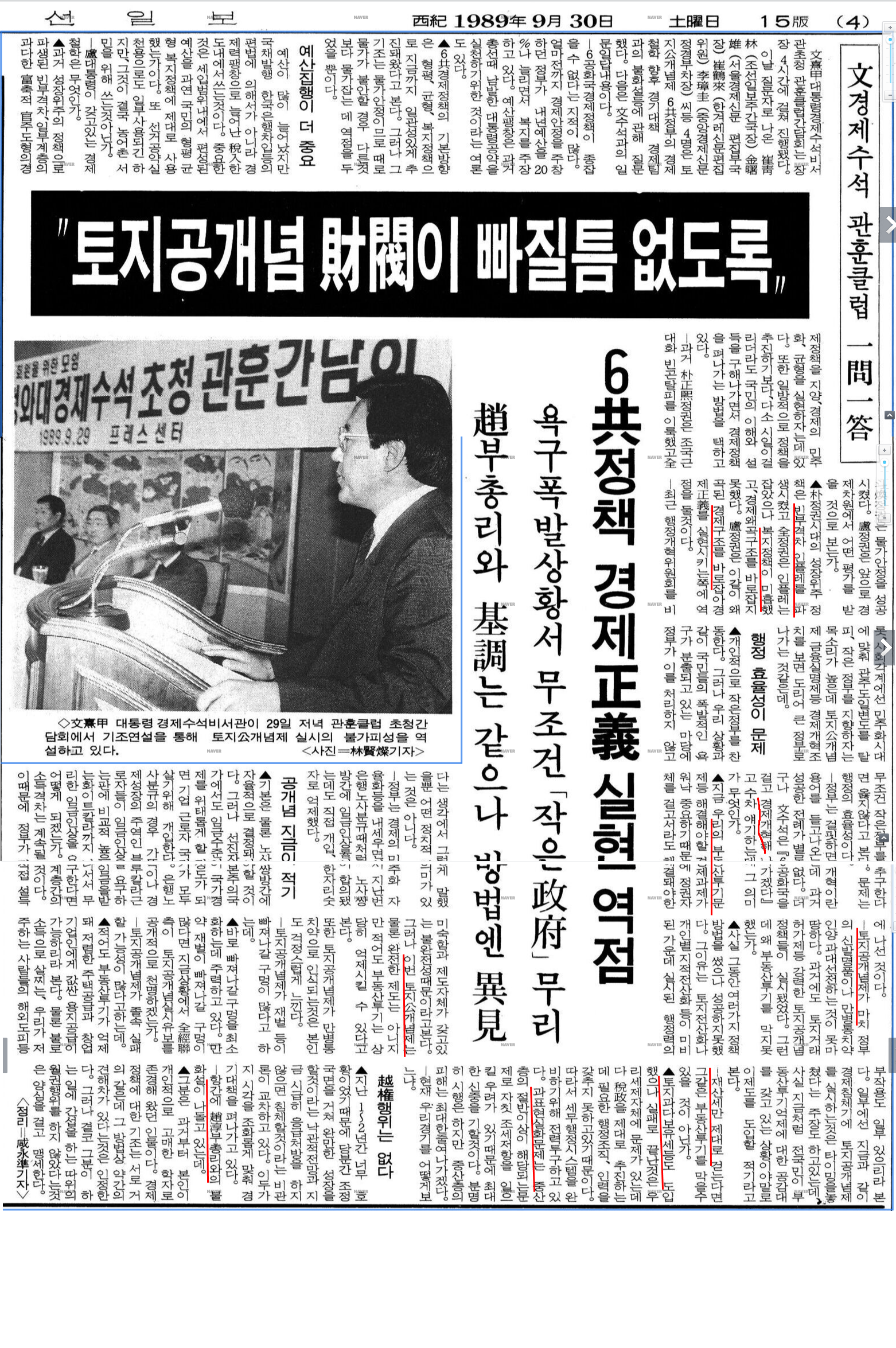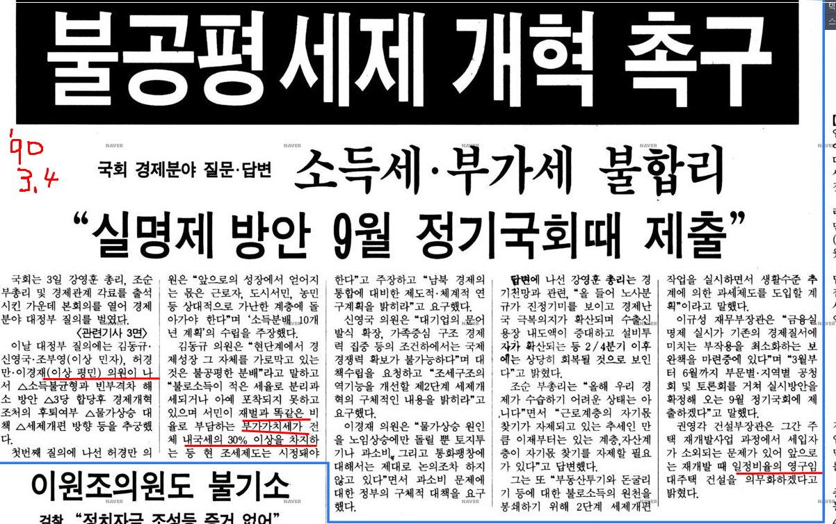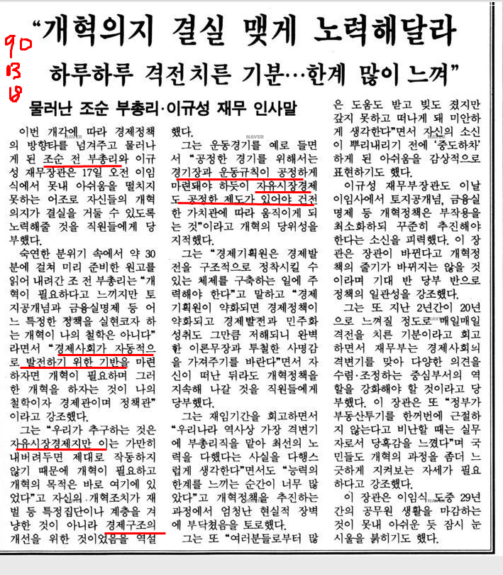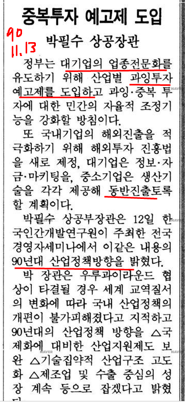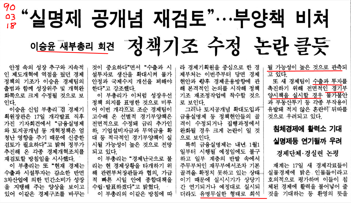 흥미로운 사실. 1990년 12월 27일자 조선일보 사설도, 당시 대기업의 소유집중과 문어발식 경영 독과점 문제 (과잉 투자와 과잉 생산)를 고칠 때라고 주장할 정도였다.