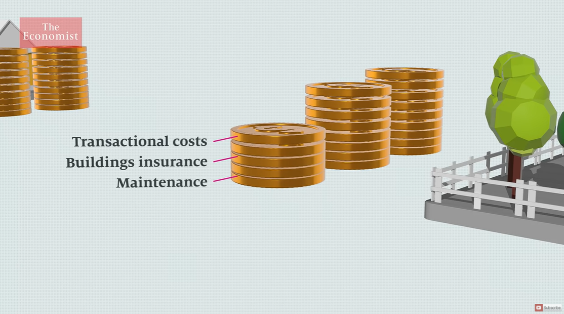 그러나 중장기적으로 보면, 실제 경제적 비용은 비슷하다. 월세자는 월세만 고민하면 되지만, 자가 소유자는 '집 사고 파는 비용' '주택 보험' '유지비용' + 융자 원금, 이자 + 주택세 (세금) 까지 고려해야 한다.