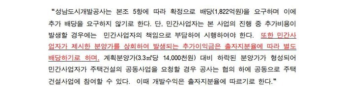 성남도시개발공사 개발사업1팀이 건의한 초과이익환수 조항. ※ 이미지를 누르면 크게 볼 수 있습니다.