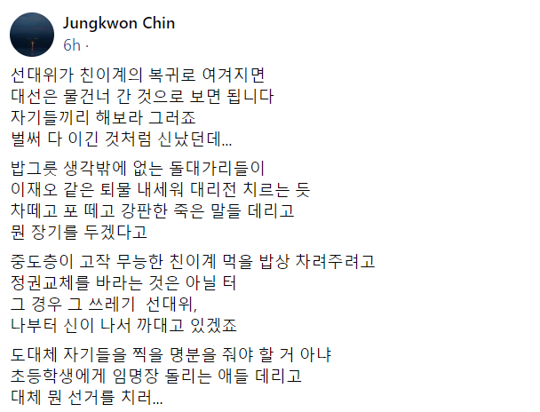 정권교체를 바라는 것은 아닐 터