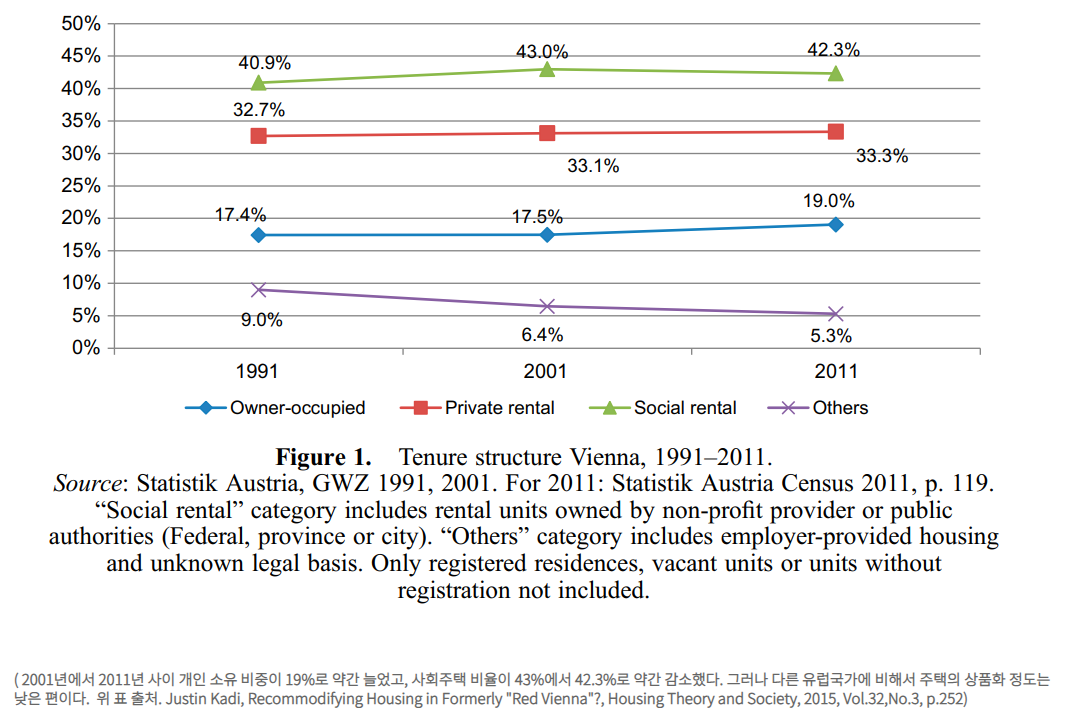 (2) 오스트리아 비엔나 시의 경우, 시가 직접 소유한 공동주택(아파트)이 23만채였다가, 사적 민간시장에 매각한 건 8채~1만채 정도밖에 되지 않음. 전 세계 유명한 도시들 중에서, ‘주택 상품화 = 주택 돈벌이 수단’에 가장 강력하게 저항한 도나우 강변 비엔나 시임.